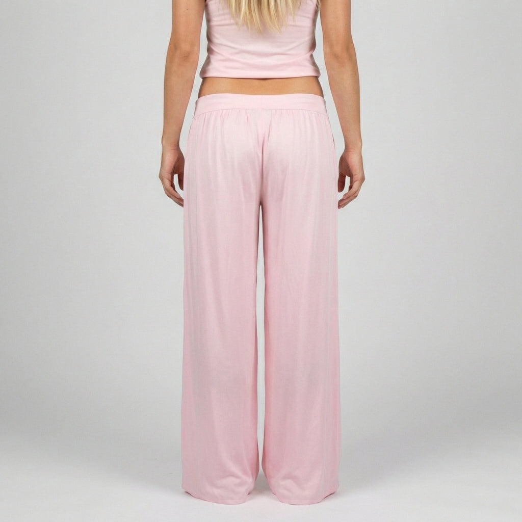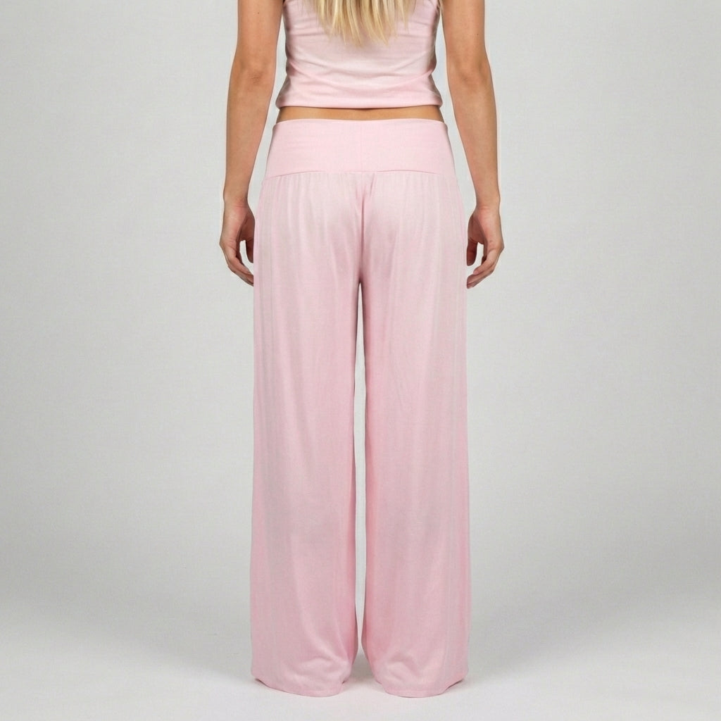 kuvat näyttävät housujen ihanan istuvuuden ja miten pitkän resorin ansiosta voi muokata miten haluaa pitää niitä.