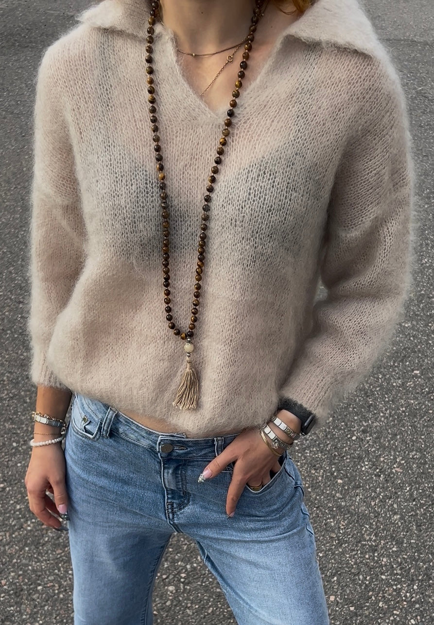 Aivan ihana luksus kidmohairvilla neule Ranskasta. KIDMOHAIR on super pehmeää, kevyttä ja hengittävää villaa. Tämä mahdollistaa ympärivuotisen käytön. Neule on kevyt, joten laskeutuu kauniisti. Sopii mekkojen päälle, hameiden kanssa, housujen kanssa ja melkein minkä tahansa.