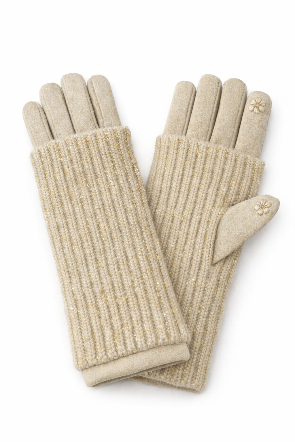 Tyylikkäät ja lämpimät kosketusnäyttökäsineet. Käsineet on viimeistelty kauniilla, kimaltelevilla yksityiskohdilla, jotka tuovat niihin ripauksen eleganssia.