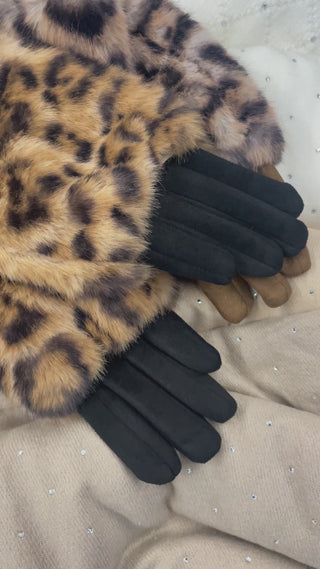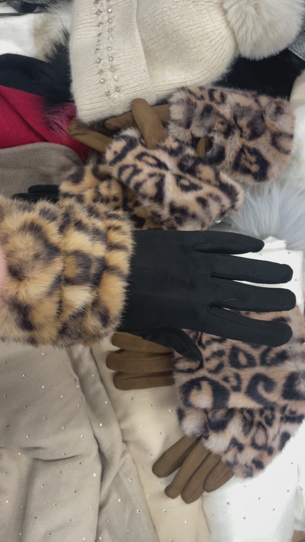 Pariisista tuodut ihanat leopardi hanskat joilla pystyy käyttämään kosketusnäyttöpuhelinta.