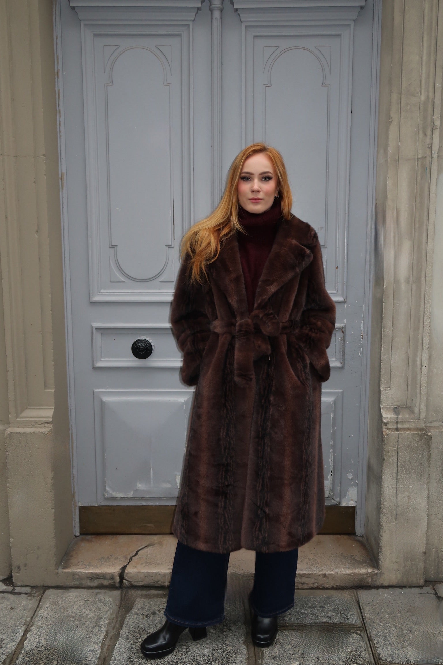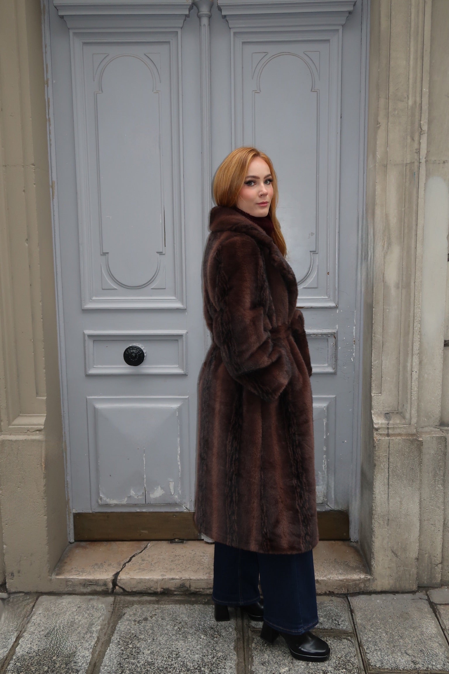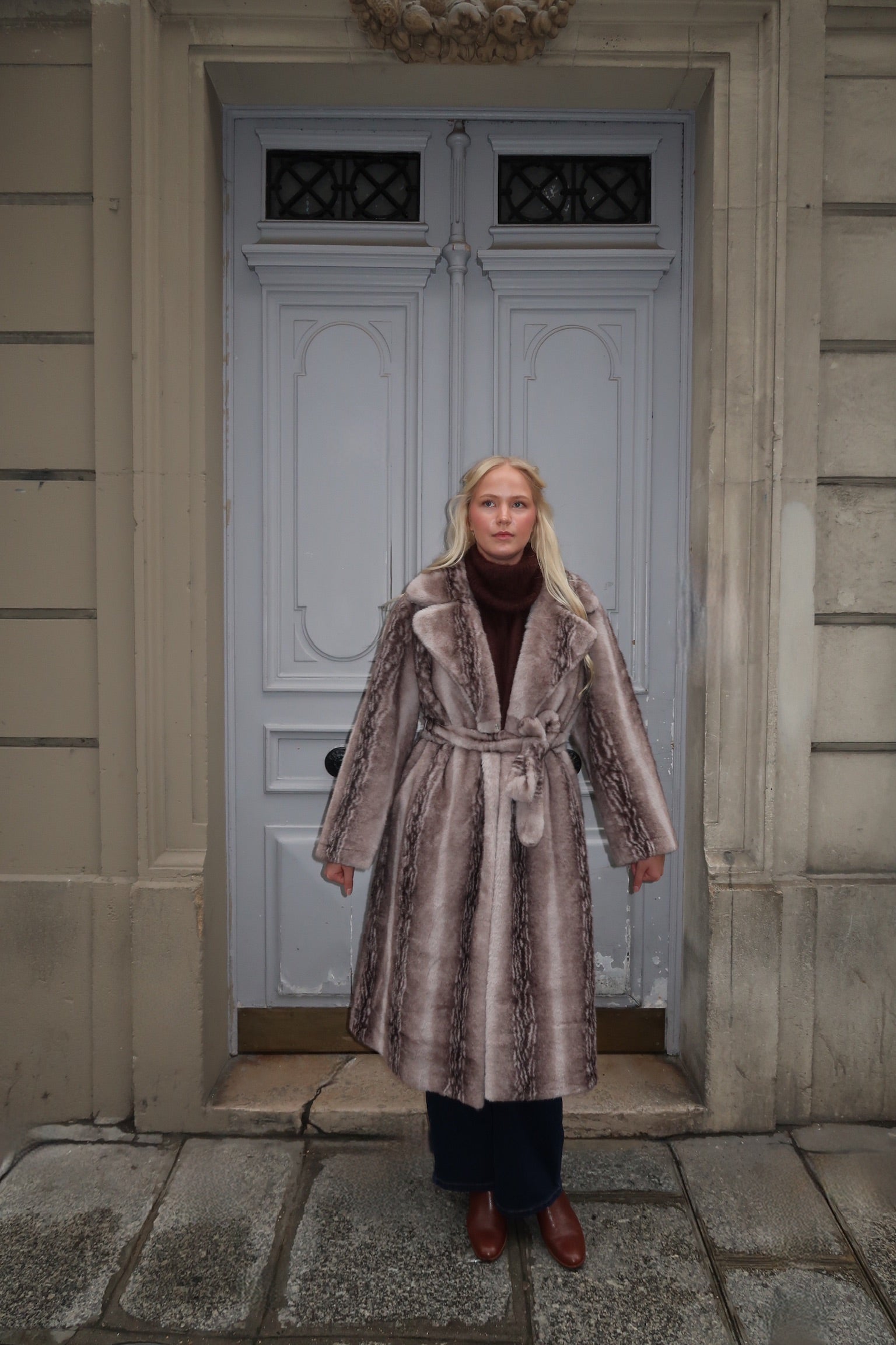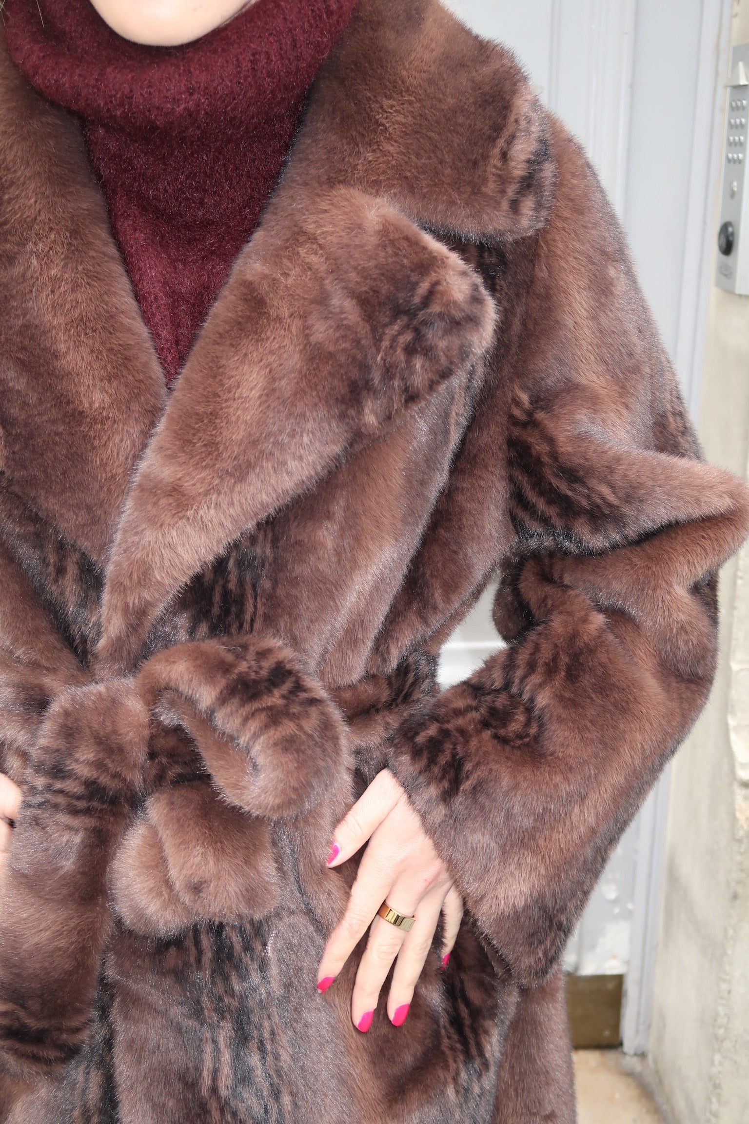 Upea paksu ja pitkä keinoturkistakki Ranskasta.